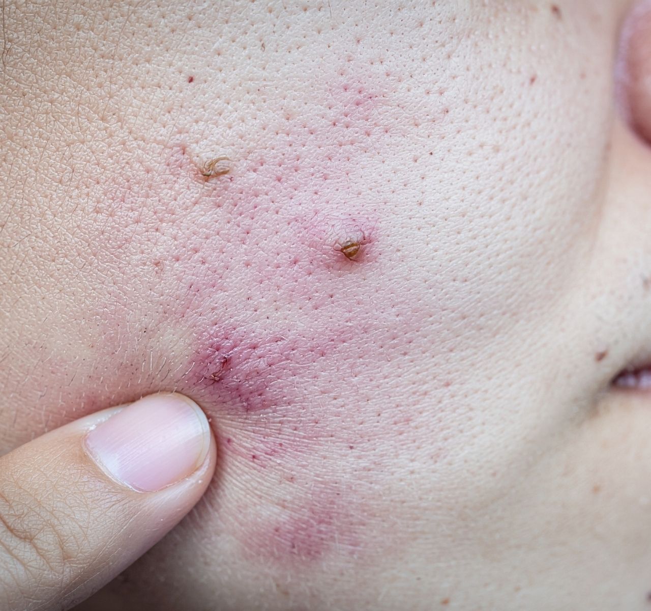 如果這顆痘痘已經紅腫得很大片,甚至摸起來有強烈的刺痛感,代表內部發炎情況可能比較嚴重,這時候不適合自行處理,建議先尋求醫生建議。